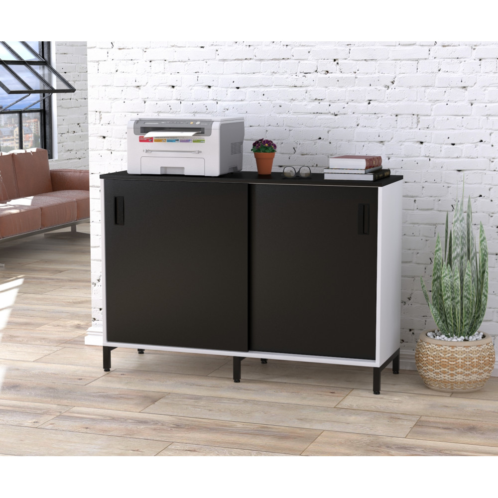 Офисная тумба с раздвижными дверями LS-1200-830 антрацит от компании Loft Design - это современный многофункциональный и в то же время стильный предмет интерьера. В угоду современным тенденциям, тумба выполнена в минималистическом стиле. У неё отсутствуют декоративные элементы, а врезные ручки и раздвижные двери не выступают за пределы тумбы. Однако благодаря красивому сочетанию фасадов, имеющих расцветку с выраженной древесной текстурой, корпуса выполненного в белом цвете, а также чёрных матовых металлических ножек, достигается модный сейчас стиль Лофт.