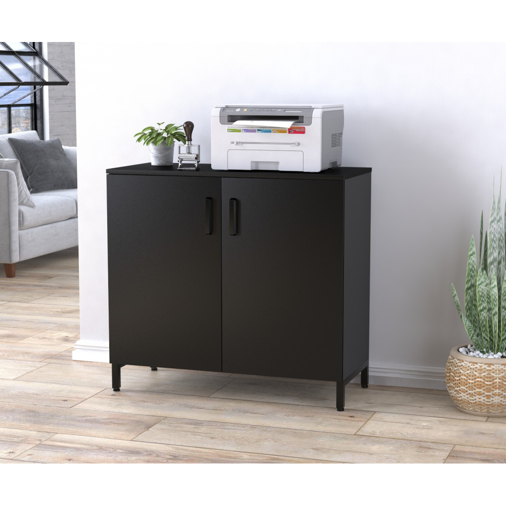 LT-900-830 антрацит - это классическая невысокая офисная тумба с двумя дверями и полками внутри. Однако она имеет некоторые отличительные особенности, которые выделяют её среди аналогов. Это металлические опоры, которые придают внешне лёгкость и необычность, а также двухцветная расцветка, которая делает акцент на красивых фасадах и в тоже время отводит взгляд от громоздкого каркаса.