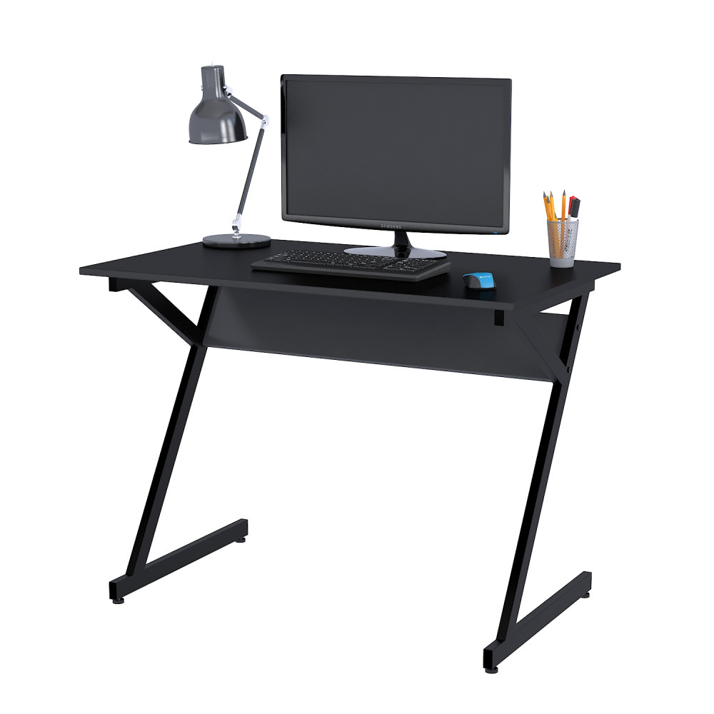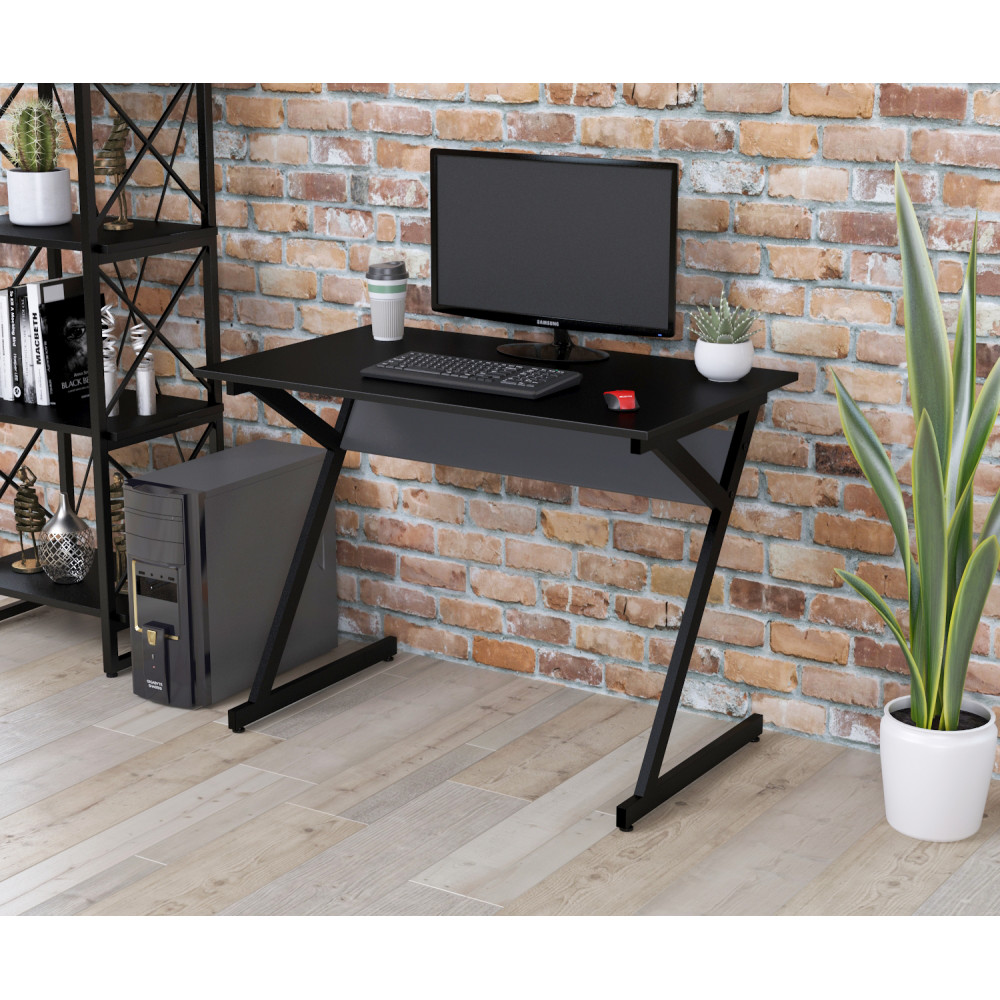 Стол L-7 имеет оригинальную конструкцию корпуса, которая ломает наши стереотипы о столах. Вместо привычных нам четырёх опор, здесь две Z-образные ножки, выполненные из металлической трубы 40*20 мм. Между ногами установлена балка жесткости из ДСП в цвете антрацит, а под столешницей имеется металлическая балка, которая поддерживает столешницу. Металлический каркас выполнен из прочного металла толщиной листа 1,4 мм. Металл окрашен чёрной порошковой краской с матовым оттенком, которая устойчива к физическим воздействиям. Внизу опор имеются маленькие регулируемые ножки, предназначенные для компенсации неровностей пола.Столешница изготовлена из ламинированного ДСП толщиной 18 мм. По периметру она оклеена двух миллиметровой кромкой из ПВХ. ДСП представлено в пяти расцветках: Венге Луизиана, Орех Модена, Дуб Палена, Дуб Борас, Белый и Антрацит.