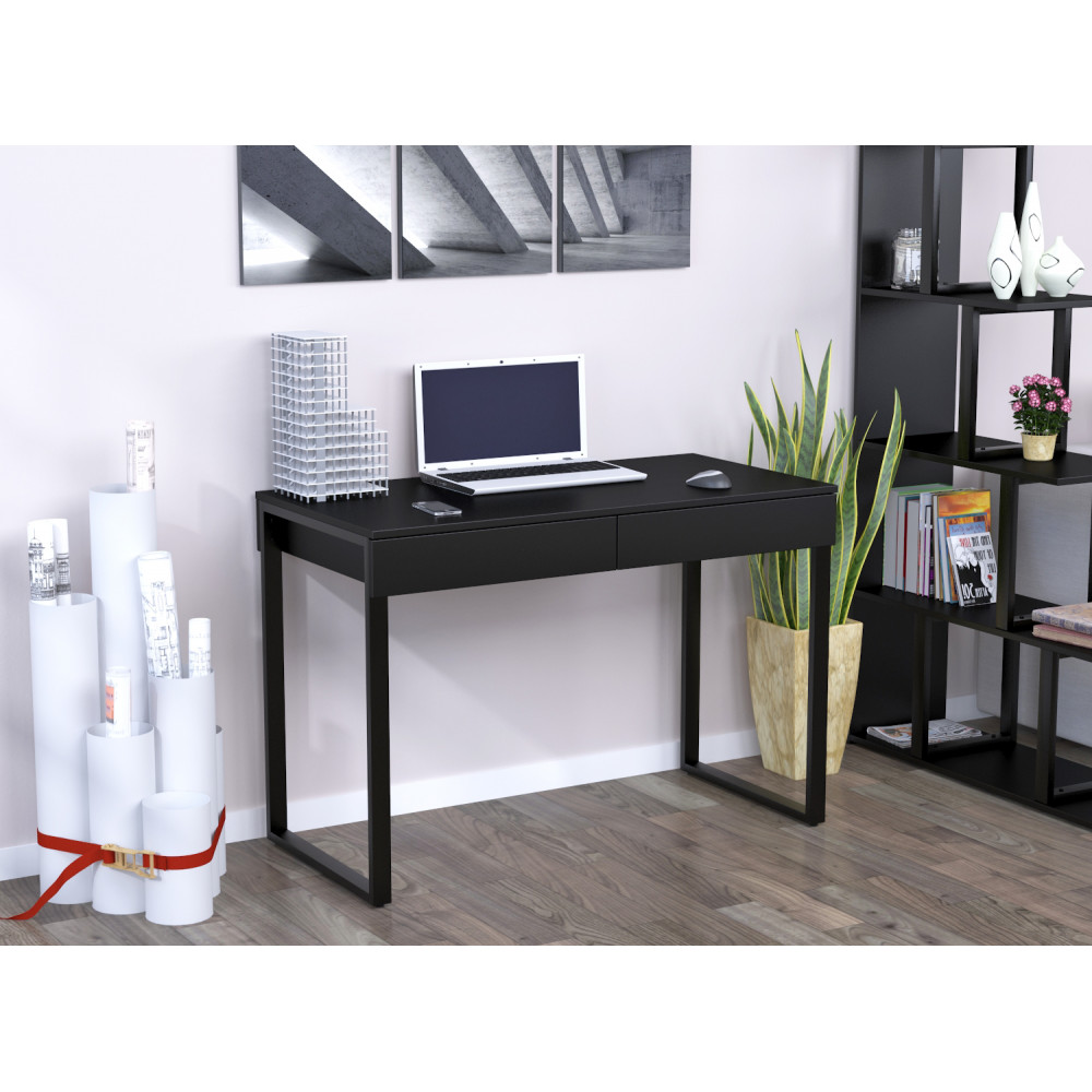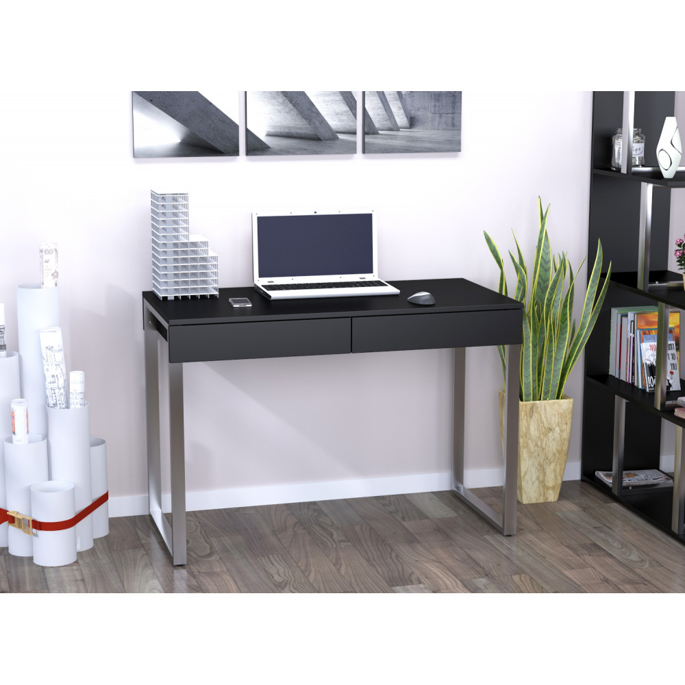 Это компактный письменный стол, который подойдет и для небольшого помещения. Прочность и надежность модели обеспечивают массивные металлические ножки. Под столешницей находятся вместительные ящики для офисных документов и канцелярских принадлежностей.