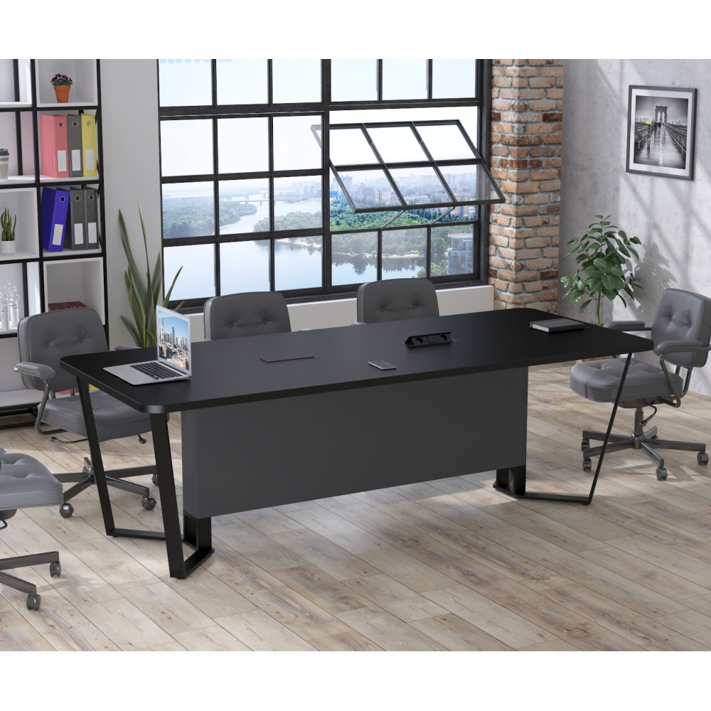 Стол для переговоров V-240 от компании Loft Design- это современное виденье офисной мебели. Теперь стол для переговоров может быть не просто большим и скучным, а стильным и привлекающим к себе особое внимание. Он выполнен в стиле лофт и модерн, который популярен и актуален на протяжении долгого времени. Такой современный стол станет центральной фигурой любого конференц-зала. Актуальные формы, идеальные габариты и дополнительно встроенные розетки позволят проводить за столом долгое время и чувствовать комфорт каждую секунду.