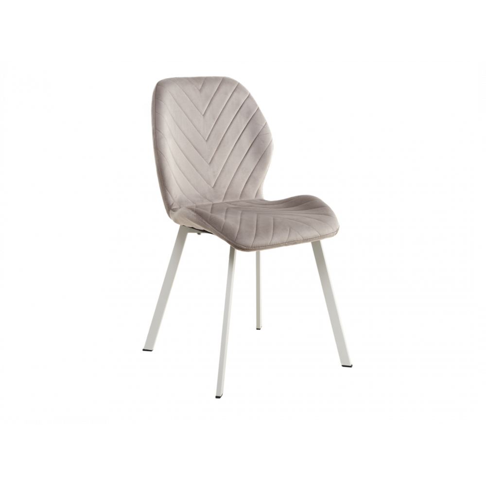 Каркас стула изготовлен из качественного и прочного металла. Он окрашен в белый цвет, методом порошкового напыления. Благодаря такому покрытию поверхность металла выглядит более эстетично и имеет длительный срок службы. Обивка стула выполнена из ткани велюр. В основании ножек установлены пластиковые заглушки, которые защитят поверхность пола от царапин и вмятин. Форма спроектирована таким образом, что стул будет максимально устойчивым на любой поверхности, даже неровной. Такой материал приятный на ощупь, долго сохраняет свой первоначальный цвет, эластичность, устойчив к потертостям и незначительным механическим повреждениям, а также легко поддается чистке.