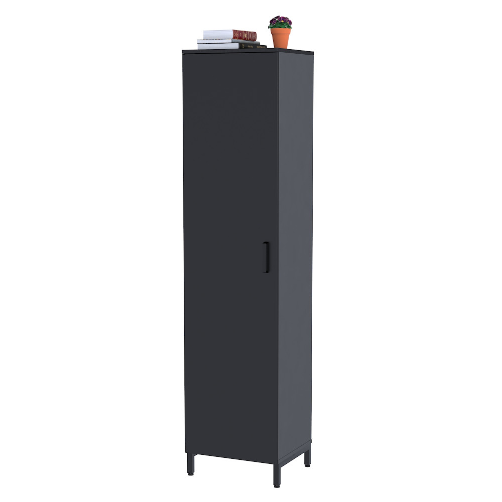 LT-450-1900 антрацит - це класична офісна однодверна шафа або пенал з полицями всередині. Однак, він має деякі відмінні риси, які виділяють його серед аналогів. Це металеві опори, які надають зовні легкість і незвичайність, а також двокольорове забарвлення, що робить акцент на красивому фасаді і водночас відводить погляд від громіздкого корпусу.