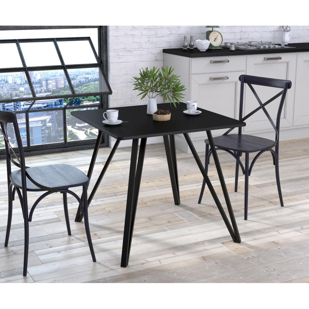 Ніжки виготовлені із труби з профілем 30*20 мм. Товщина стін 1,2 мм. Вгорі ніжок приварені металеві пластини, товщиною 3 мм, які збільшують площу дотику ніжок до стільниці. Складання здійснюється на саморізи. У комплекті йдуть повстяні накладки для захисту поверхні підлоги.Зверніть увагу, що цей стіл треба захищати тривалої дії рідини або високих температур. Рекомендуємо використовувати підставки чи підкладки під предмети.