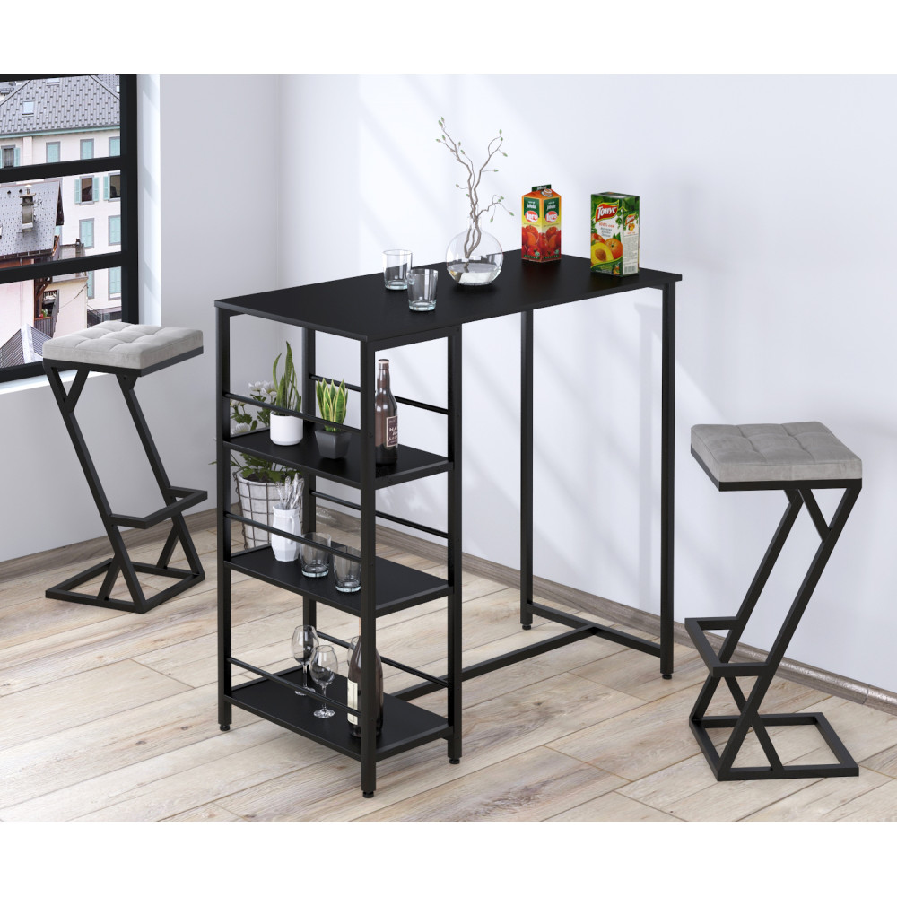 На відміну від більшості інших барних столів, ця модель поєднує барну стійку і невеликий стелаж. 3 глибокі полиці ідеально підходять для розміщення посуду, чашок, закусок та вина. А стільці можна поставити під стіл, щоб заощадити місце, коли вони не використовуються.