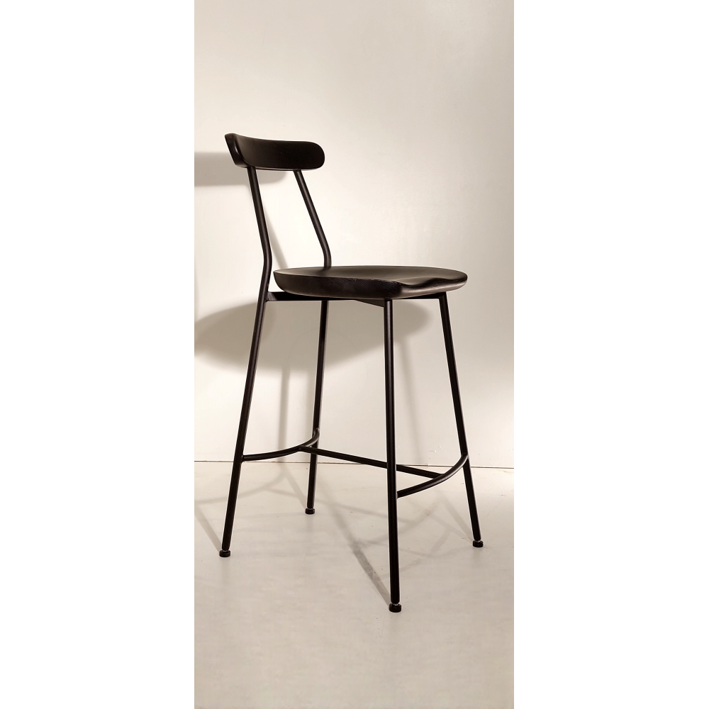 Стильний барний стлець зі спинкою, котрій стане гарною прикрасою для вашої кухні, кафе або бару. Зроблений з якісного металу у червоному кольорі. На вибір різноманітна палітра кольорів натуральної деревини та кілька вибів покриття.