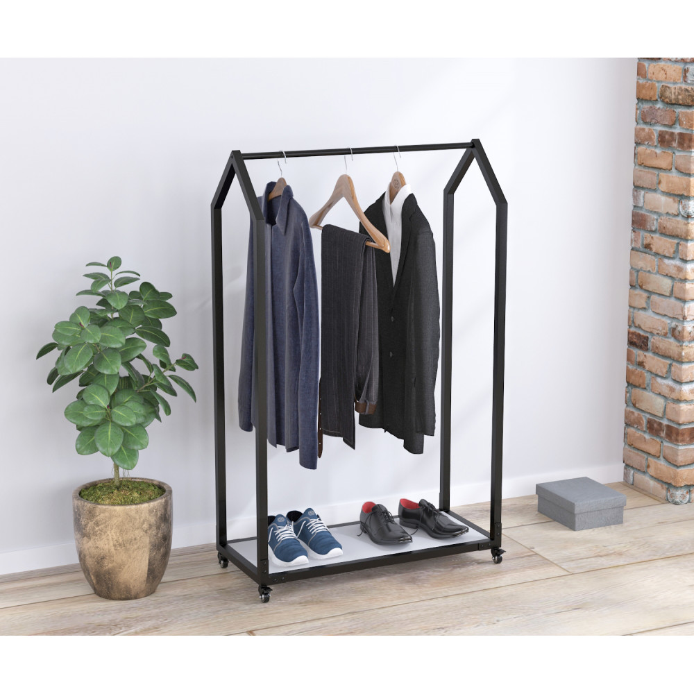 Мобільна конструкція. Надійні коліщатка дозволяють легко переміщати вішалку по всій кімнаті, встановлюючи її в потрібному місці. Стане чудовим вибором для фотостудій, шоурумів, модельних агенцій, виробництв або магазинів одягу.