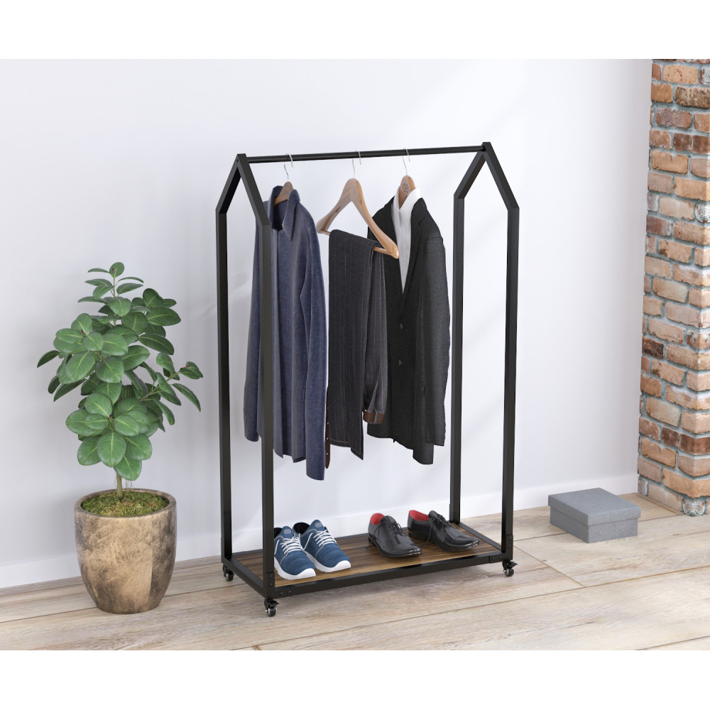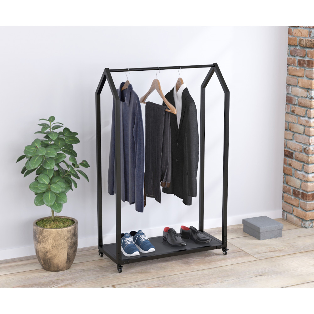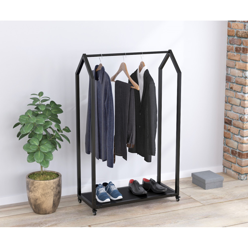 Мобільна конструкція. Надійні коліщатка дозволяють легко переміщати вішалку по всій кімнаті, встановлюючи її в потрібному місці. Стане чудовим вибором для фотостудій, шоурумів, модельних агенцій, виробництв або магазинів одягу.