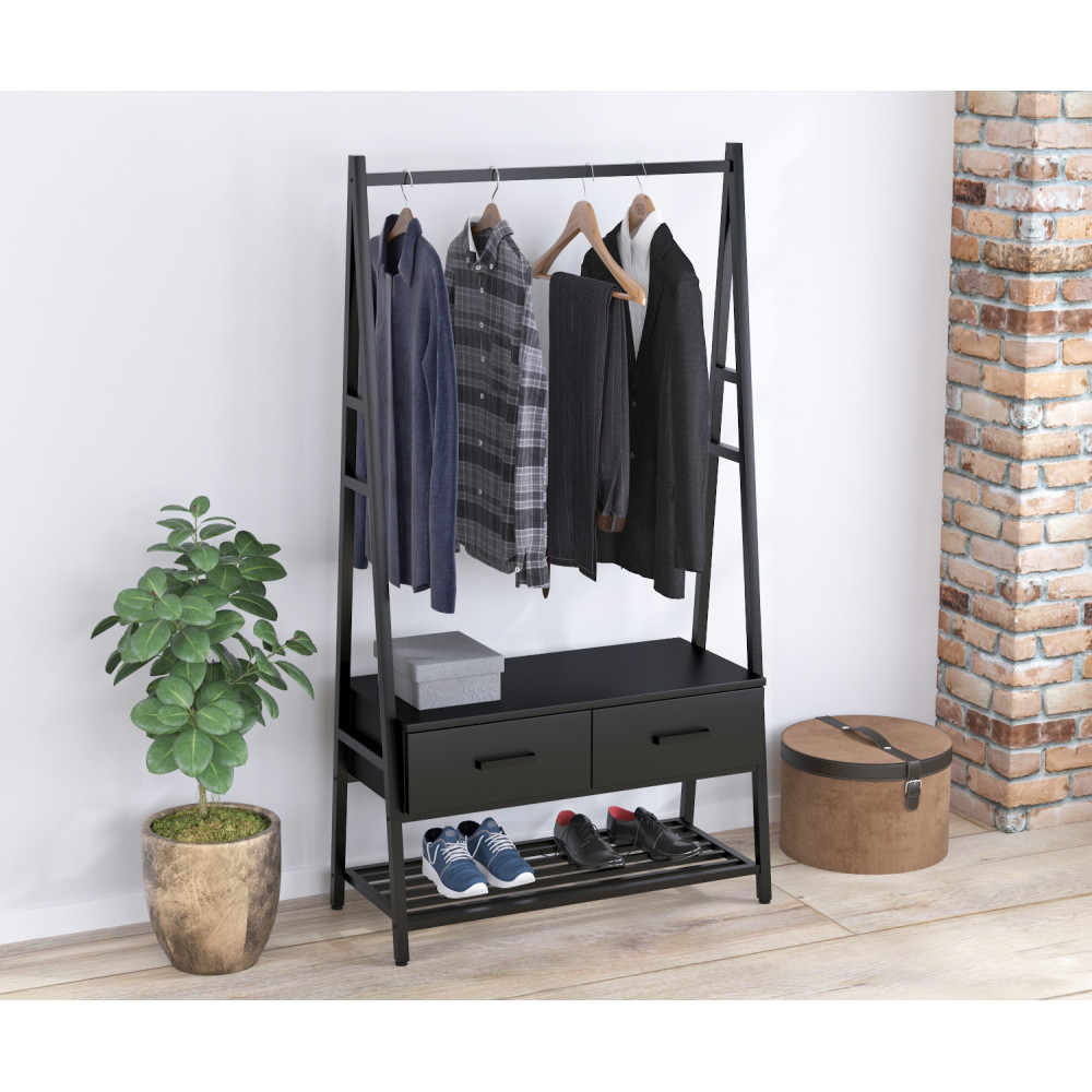 Модель SDO-5 — це повноцінний гардеробний модуль, який замінює собою одразу кілька предметів меблів. Поєднання відкритої системи зберігання, закритих шухляд та полиці для взуття робить її ідеальним рішенням для організації порядку в домі чи офісі.